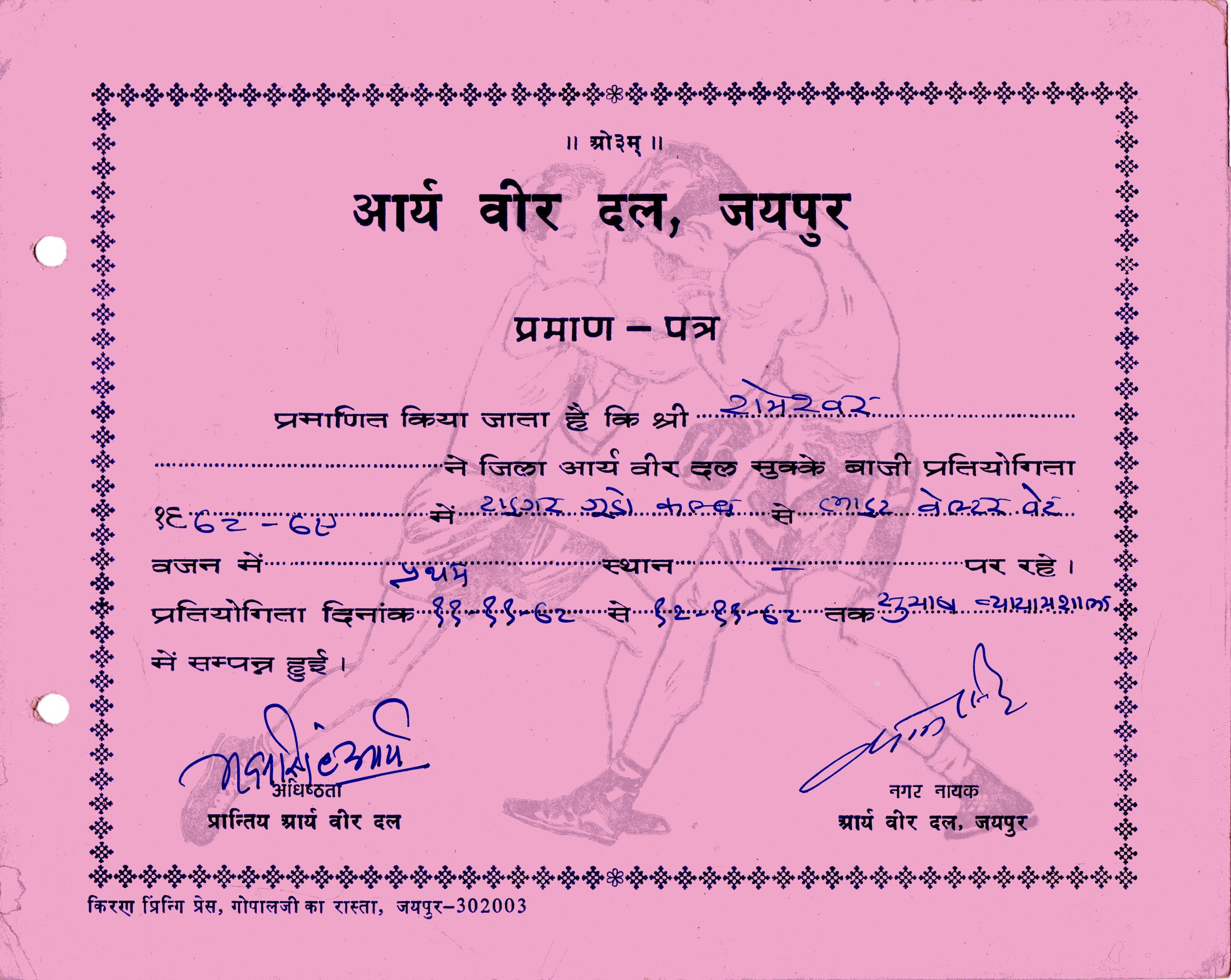 - In the year 1976- became jaipur district heavy weight Boxing champion.